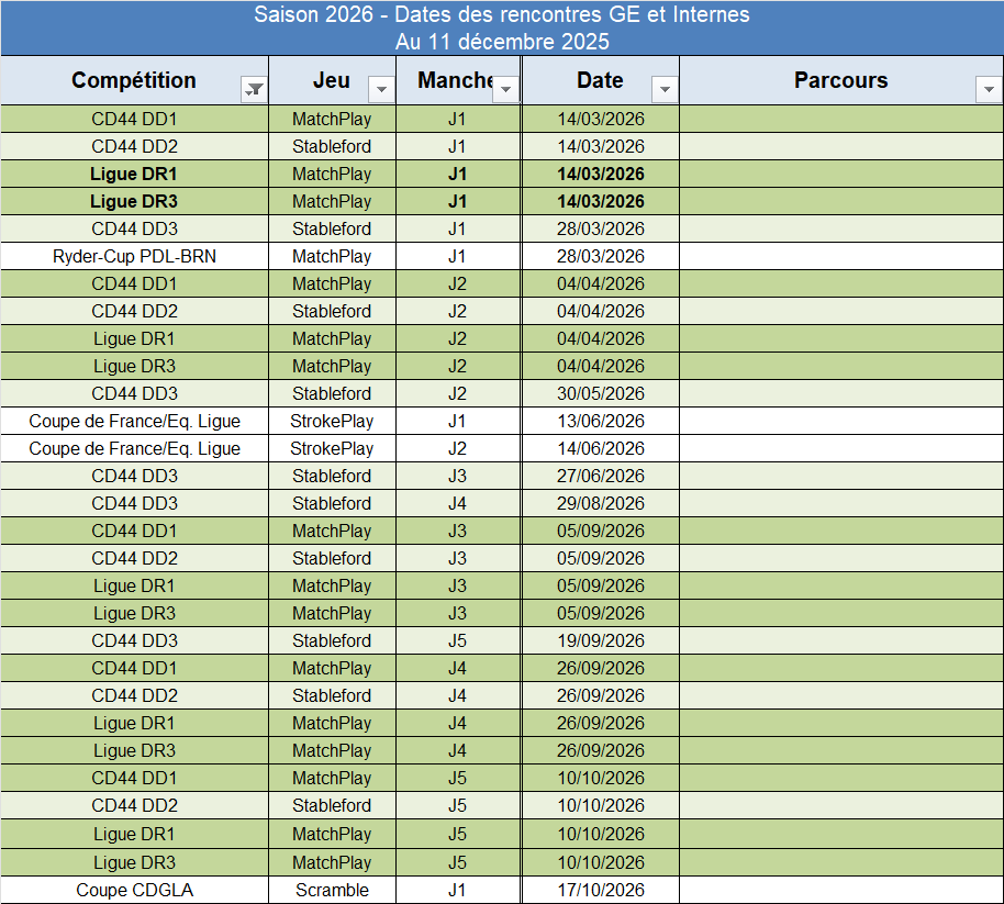 Calendrier Golf Entreprise 2026 - en cours de validation