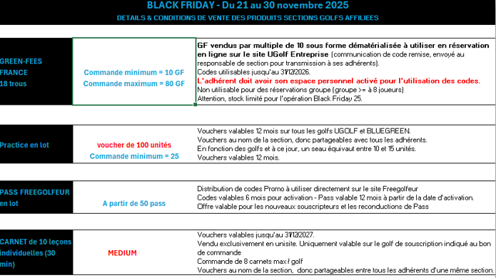 En cours --- Opération Black Friday Ugolf-Bluegreen - Nov 2025 - voir liste ci-dessous - date limite de réservation le 28 novembre 2025 - Votre prévision d'achat vous engage.